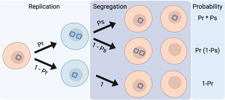 In addition, we modeled KSHV-dependent malignancies to evaluate reduction of replication or segregation as potential growth disruption strategies. Simulations of exponentially growing tumors demonstrated that reducing replication, but not segregation, could effectively disrupt tumor growth, and the requisite reduction depends on cell division kinetics.